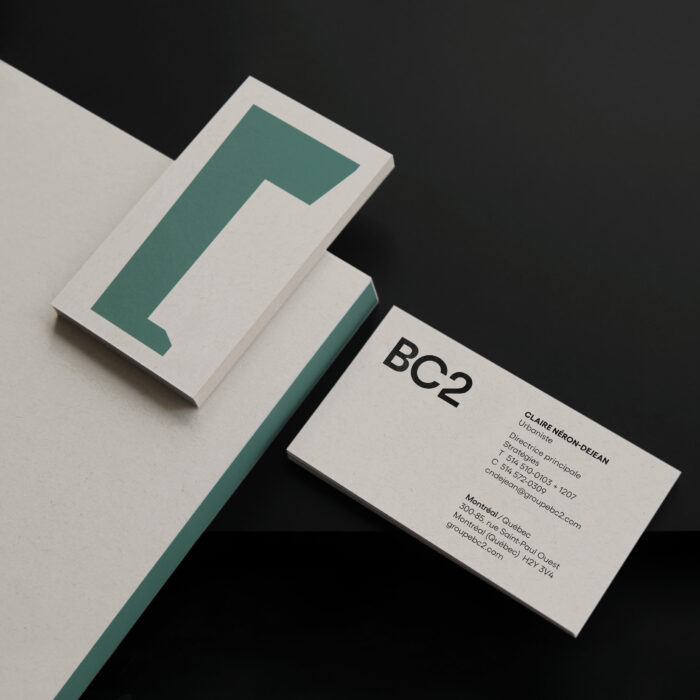 L’actualisation de l’identité et plateforme de BC2 doit évoquer naturellement le vaste champ d’expertise de la firme défini par Réfléchir l’espace. Ancrées avec force et stabilité, les lettres de la typographie possèdent un caractère assumé. Celle-ci, dotée de jeux d’angles droits et de rondeurs, évoque tant les qualités de rigueur que de souplesse de la firme. À travers ses formes et ses contre-formes sont créés des espaces en rapport les uns les autres, l’œil circule. La plateforme graphique présente la schématisation de projets phares de BC2, et met ainsi en valeur les formes pures en elles-mêmes et crée une spatialité. Leur déclinaison évoque le rationnel du plan technique rendue accessible par une palette de couleurs décalée et contemporaine conjuguée à la matière brute.