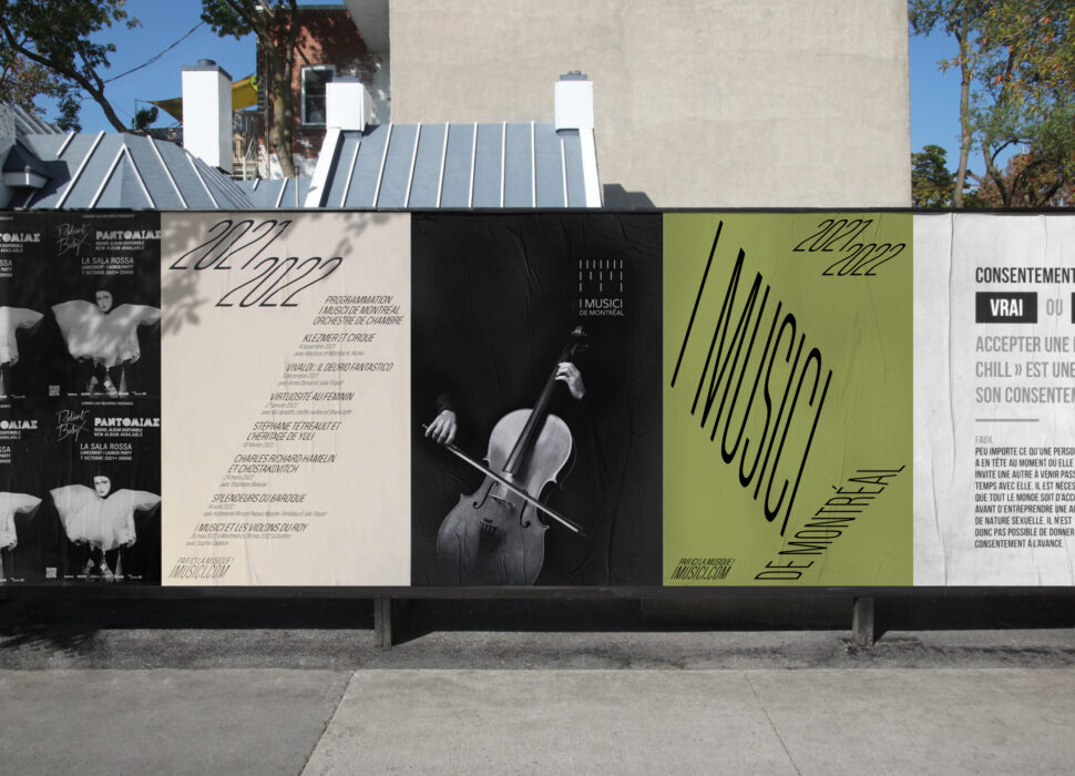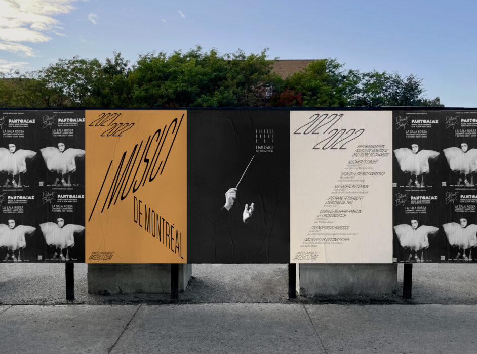 Un vent de renouveau souffle sur l’orchestre de chambre I Musici de Montréal. Puisant son inspiration dans une direction visuelle aux éclairages caravagesques, en dialogue avec des affiches textes anguleux, écho à l’onde sonore dans une salle, la campagne allie une facture contemporaine à un répertoire de grands maîtres.
