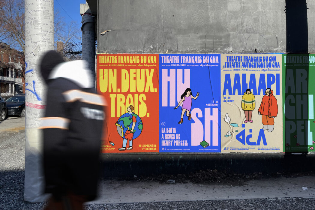 La saison 22-23 est la programmation inaugurale de Mani Soleymanlou à la barre du Théâtre français du Centre national des Arts. Souhaitant insuffler un nouveau souffle sur l’importante institution, le nouveau directeur artistique cristallise sa vision autour d’un CNA figure de proue et force vive; un projet collectif, inclusif et rassembleur. C’est à cet égard que cette nouvelle saison intitulée Singulier et pluriel du Théâtre français du CNA joue d’audace avec une collaboration spéciale de l’illustratrice Pony, qui crée pour l’occasion une foule de personnages hétéroclites et insolites. Ces compositions chamarrées rythment les affiches des spectacles et autres outils promotionnels du théâtre. Des jeux de typographies, inspirés des affiches de théâtre de la belle époque, d’autres d’inspiration psychédéliques et de magazines vintage s’entremêlent pour parachever ces compositions joyeusement colorées. La campagne se décline sur les nombreux supports du théâtre incluant des affiches, des invitations de première, des publicités vidéos et d’annonces publicitaires.