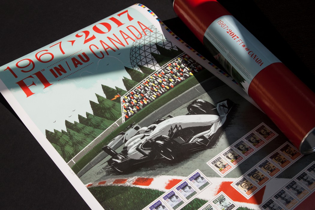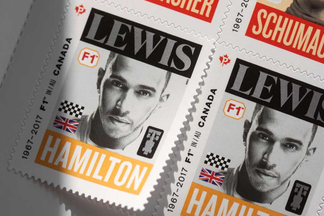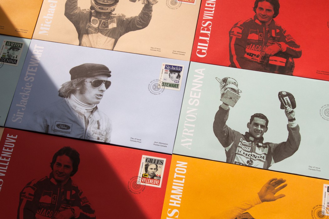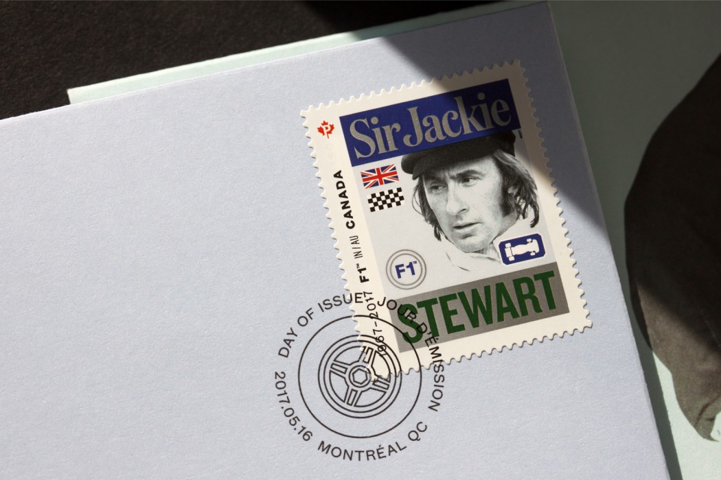 Pour souligner le cinquantenaire de la Formula 1 au Canada, Postes Canada a émis un jeu de timbres mettant en vedette cinq des plus célèbres pilotes vainqueurs du FORMULA 1 GRAND PRIX DU CANADA, représentant chacun l’une des décennies de l’histoire de cette course haletante.