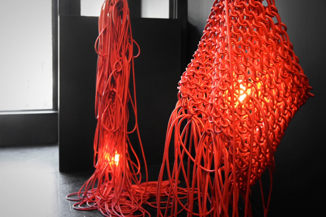 Commissaires est une galerie-boutique de Montréal spécialisée dans la diffusion de créations uniques signées par des designers internationaux. Cette entreprise a fait appel à Paprika pour concevoir l’affiche et l’invitation de l’exposition «Comme une forêt de fil» consacrée à l’artiste Kwangho Lee. Pour l’occasion, nous avons créé une fonte exclusive composée de fines lignes entremêlées et dont les formes sinueuses ne sont pas sans rappeler les longs fils utilisés par l’artiste pour tricoter ses lampes extravagantes.