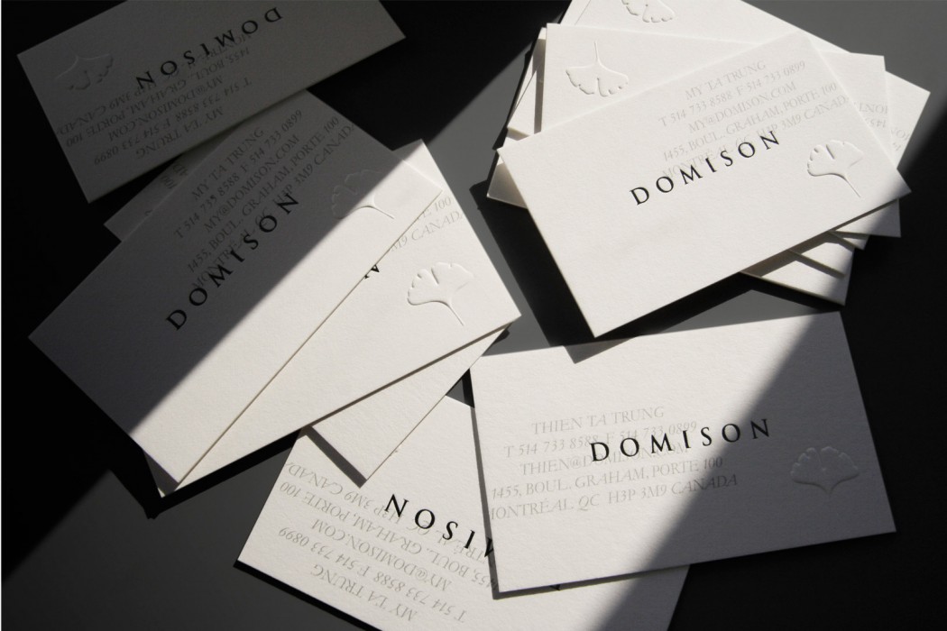 Domison est un fabricant de meubles dont la philosophie est axée sur l’offre de produits sophistiqués, uniques et avant-gardistes qui demeurent accessibles à la majorité des portefeuilles. Selon Domison, le design de qualité est un droit plutôt qu’un privilège. L’entreprise québécoise a fait appel à Paprika pour la création de son image de marque. Puisque Domison désirait une signature classique, nous avons sélectionné une police de caractère à empattements à laquelle nous avons apporté quelques modifications subtiles qui l’ont rendue unique. Une feuille de ginkgo biloba s’est également jointe à cette signature. Plus qu’un simple logo, l’identité visuelle de Domison est devenue, au fil du temps, un univers graphique hautement organique et malléable qui se réinvente à chaque projet. À l’image de l’entreprise, le programme d’identité est en constante évolution.