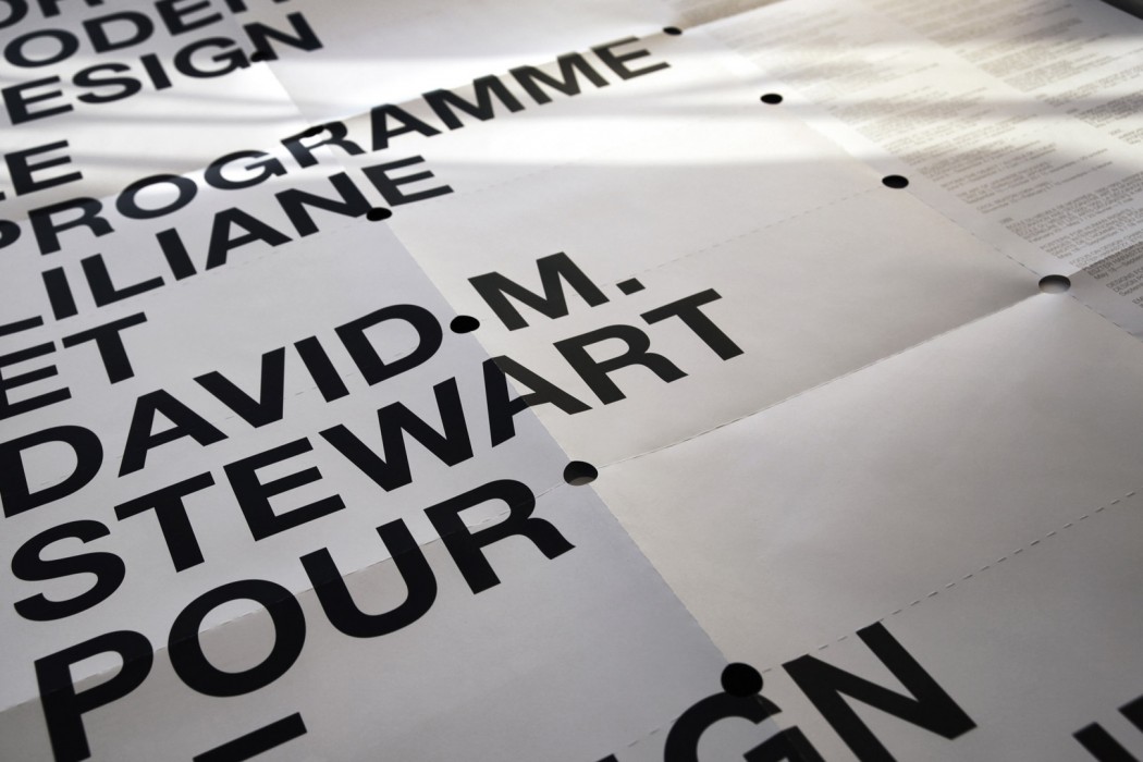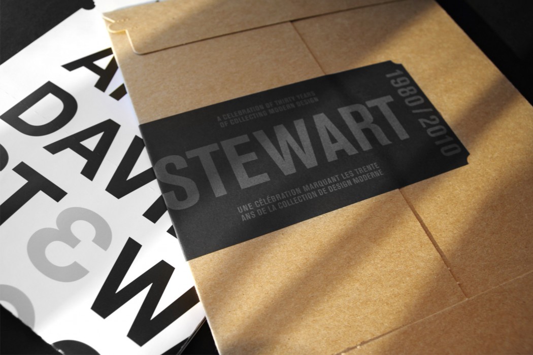 Grâce à son importante collection d’objets, d’artéfacts et de documents historiques, la Fondation Stewart contribue activement à la sauvegarde et à la mise en valeur du patrimoine du Québec et du Canada. Lors des commémorations du 30e anniversaire de la Collection Liliane et David M. Stewart, nous avons été invités à réaliser une affiche remise aux invités lors du lancement du livre «The Century of Modern Design» publié par Flammarion et présenté à Montréal (MBAM), Paris et New York (MoMA). Révélant plusieurs pièces emblématiques de la collection, trouée et perforée en pointillés, l’affiche donne l’impression d’être composée de cartons d’invitation d’expositions antérieures. Cette forme inusitée lui permet d’être pliée à multiples reprises et la rend facilement maniable.