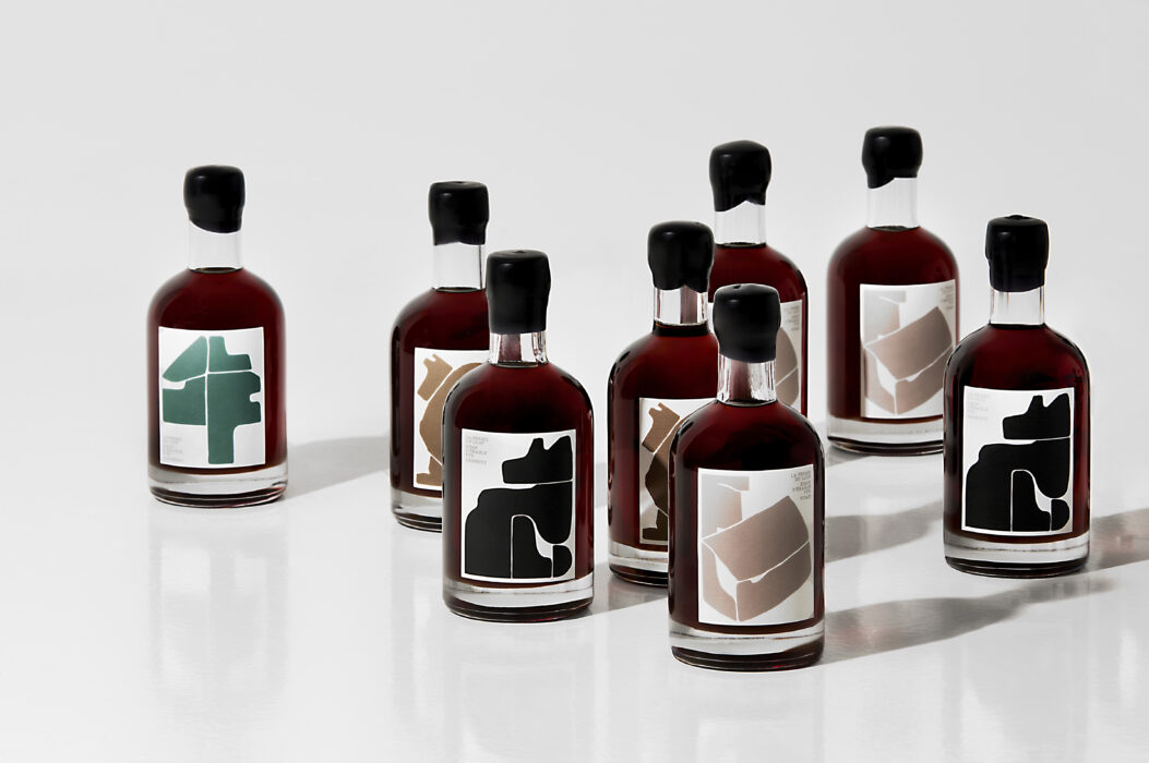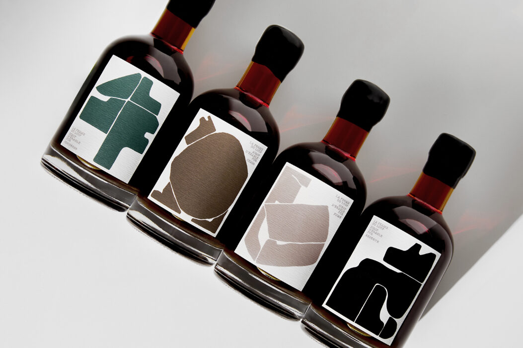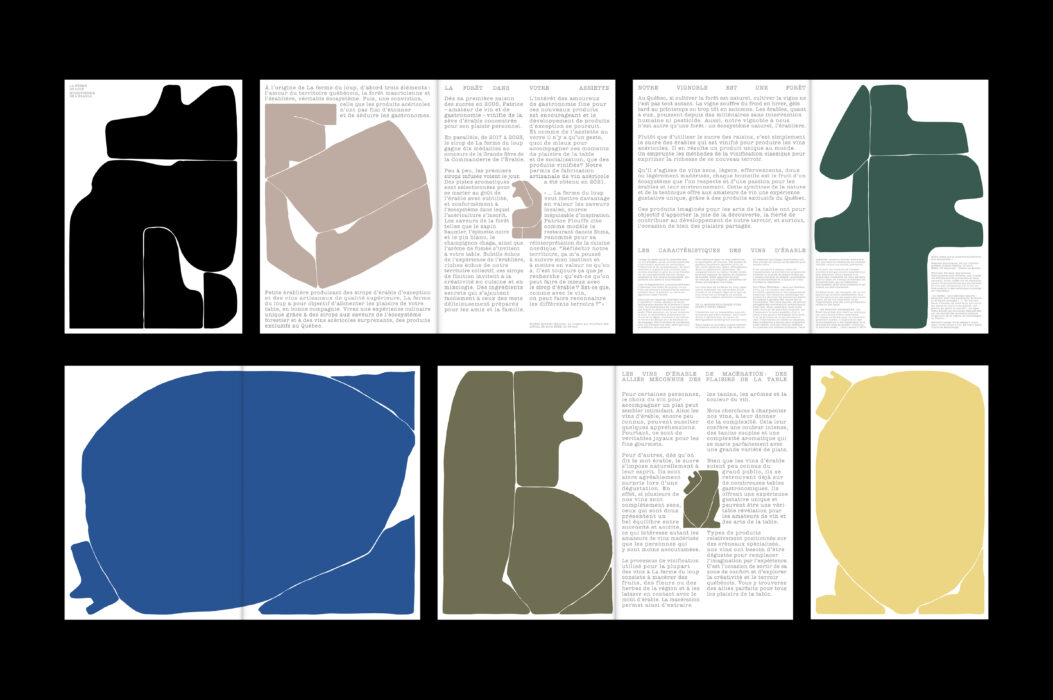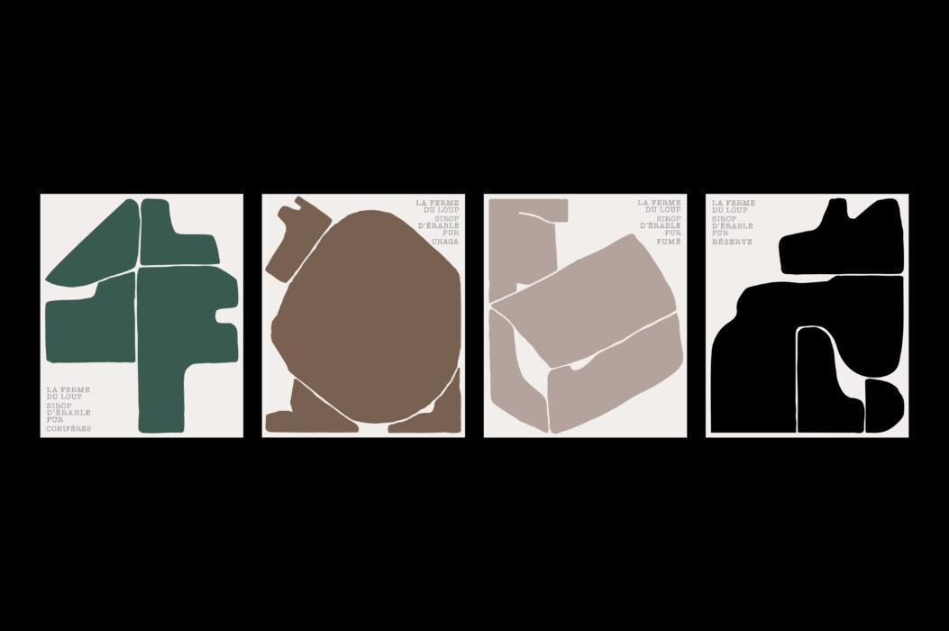 Précurseurs dans la production de vins acéricoles, les artisans de La ferme du loup élaborent leurs produits avec minutie et savoir-faire dans le respect de leur écosystème forestier. La préservation du terroir et la valorisation de ses saveurs boréales et nordiques inspirent la conception de produits d’exception en utilisant des fruits et des fleurs sauvages qui viennent parfaire l’expérience de pétillants naturels, sévels et sirops infusés. Le loup, au cœur de ce projet d’identité vient signer la marque de sa tête candidement esquissé sous la forme d’un F, celui de la Ferme et de son logotype. Chacune des initiales de LFDL sont dessinées dans un geste badin à la forme quasi abstraite. Un loup qui se redessine, prend la pose, offre diverses attitudes accompagné de son bestiaire, de son habitat : cabane, fleurs et conifères, de sorte que chaque étiquette comporte les initiales de la marque. Avec une palette de couleurs fraîches et mordantes, parachevé d’une typographie naïve et brute, le système vient prendre vie sur l’ensemble des gammes de produits, avec leurs notes et arômes distinctifs pour agrémenter si joyeusement ces plaisirs de la table.