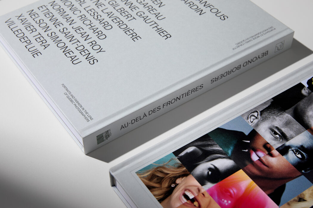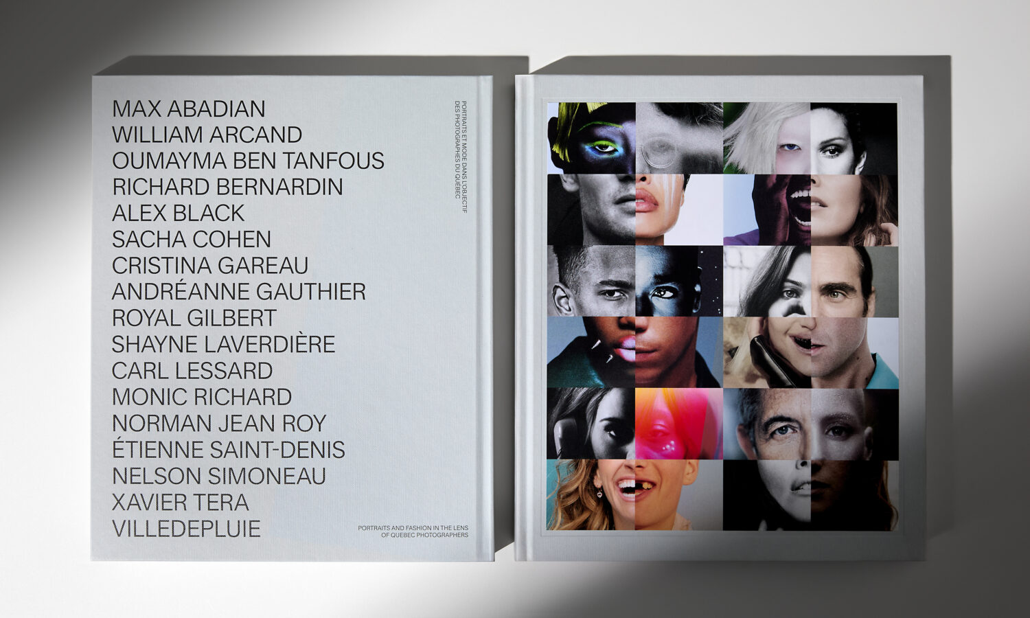 Dans le cadre de son exposition Portraits et mode – Photographes du Québec au-delà des frontières sous le commissariat de Thierry-Maxime Loriot, le Musée McCord Stewart mandate Paprika pour la conception d’un livre d’art rassemblant les tirages de 17 photographes québécois de renommée internationale. Le concept joue des frontières même du livre et dispose le nom des artistes et notes à l’extrémité des pages. Afin de créer une harmonie sur l’ensemble de l’œuvre, chaque photographe se voit attribuer une couleur : une approche permettant à la fois de marquer le début de chaque section, mais aussi d’établir une frontière entre chaque artiste. Donnant la part belle aux portraits, le livre présente en couverture une mosaïque de 24 fragments de visages, évoquant ainsi cette communauté de photographes. Une typographie linéale, sobre et élégante, vient s’arrimer à cette composition toute contemporaine.
