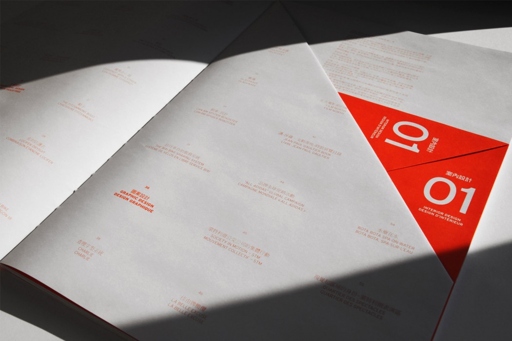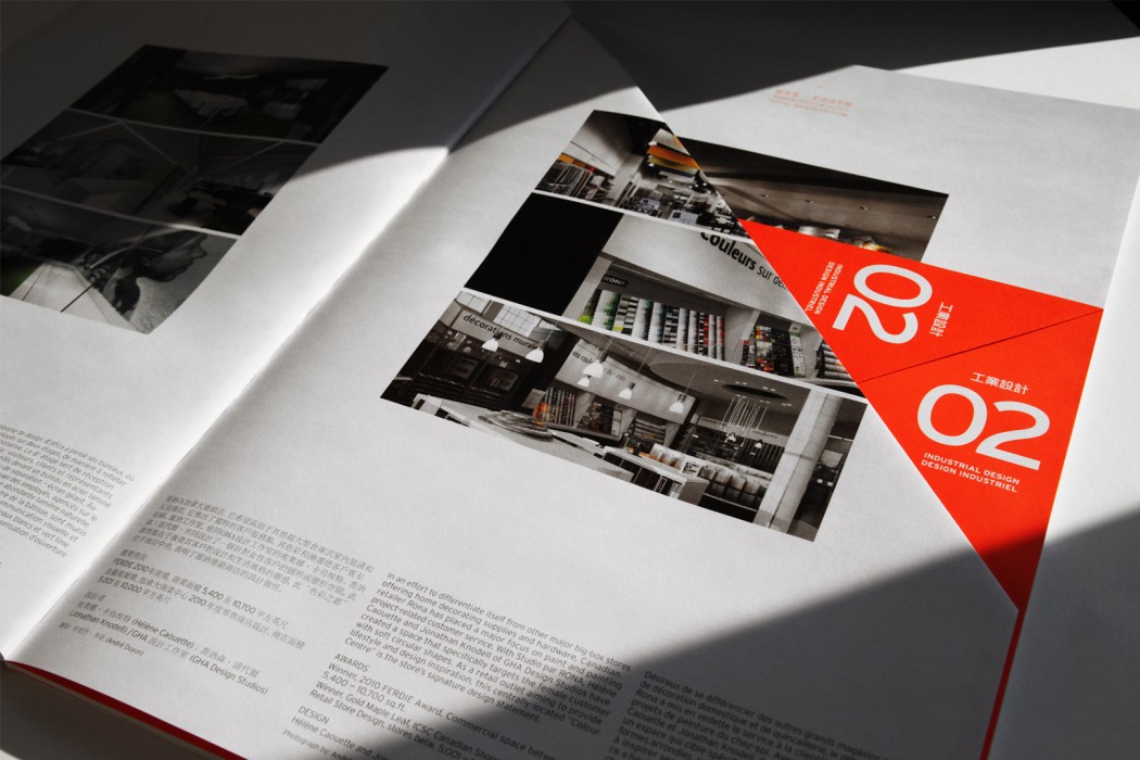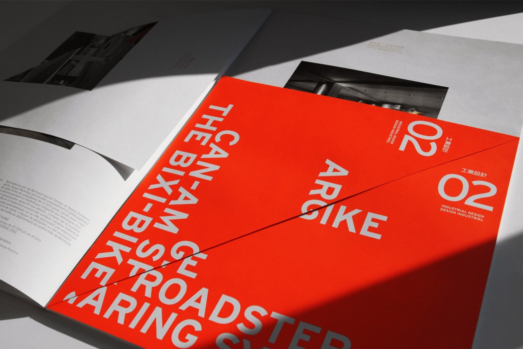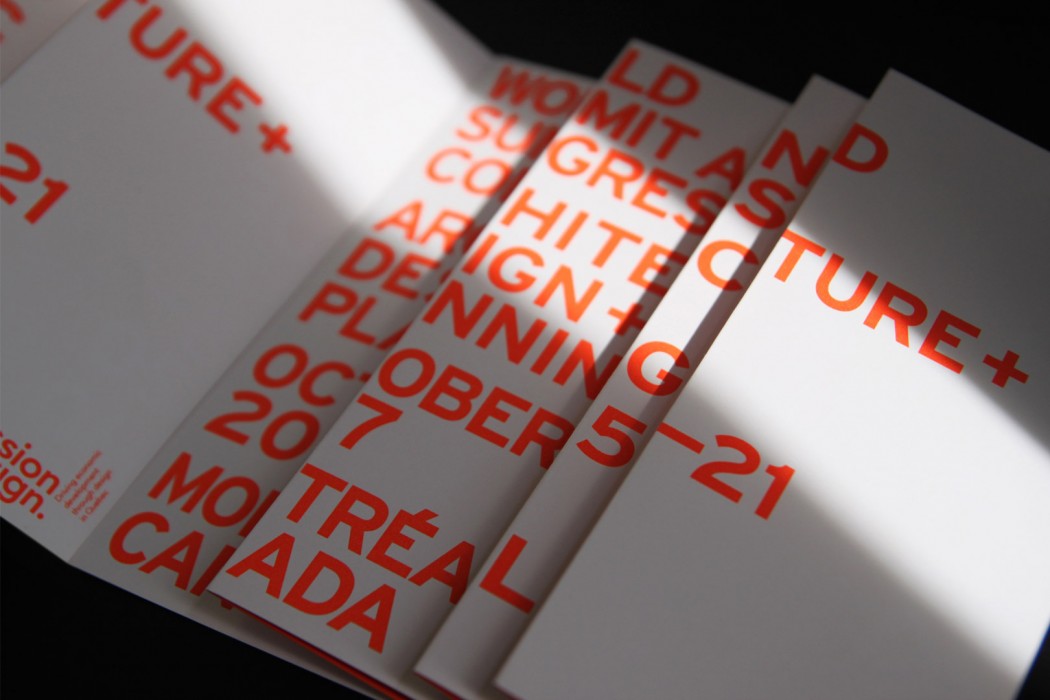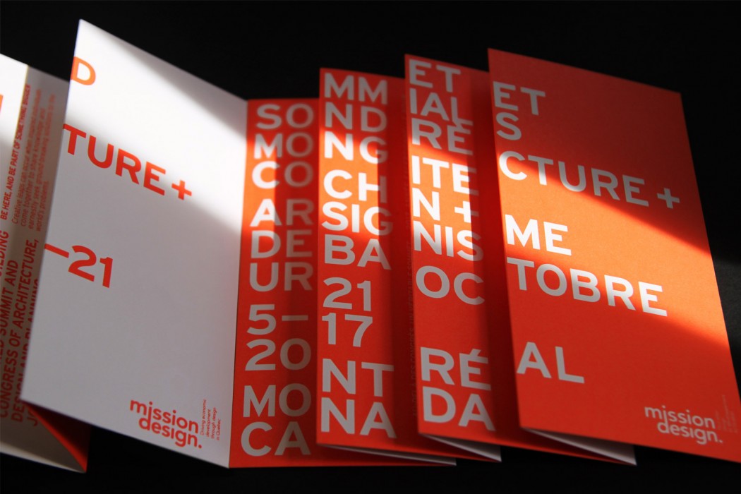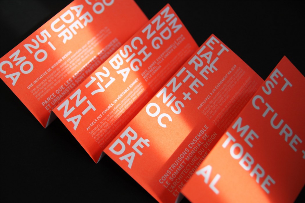 Pour ce mandat, nous nous sommes inspirés des célèbres cônes de signalisation de Montréal. Souhaitant renverser leur mauvaise réputation, nous leur avons conféré une valeur ludique et créative. Distribuée tout au long de l’exposition, la brochure de promotion du kiosque, quant à elle, a fait la part belle à l’orange éclatant et aux formes triangulaires évocatrices de ces cônes. Elle comportait également d’habiles pliages qui ont transformé la lecture en véritable expérience sensorielle.