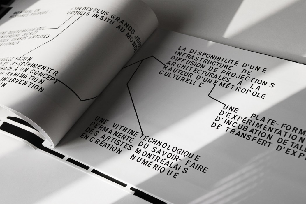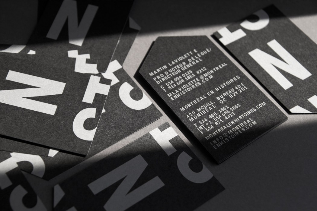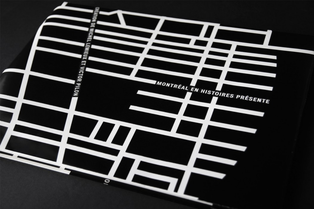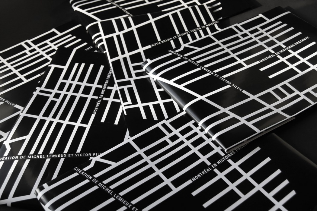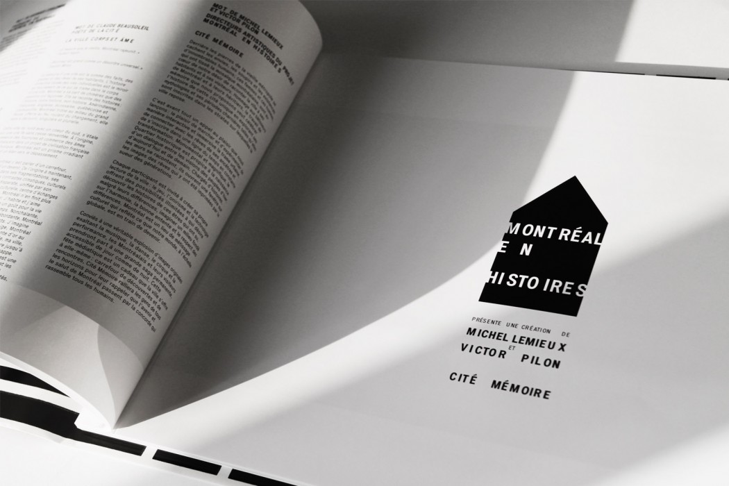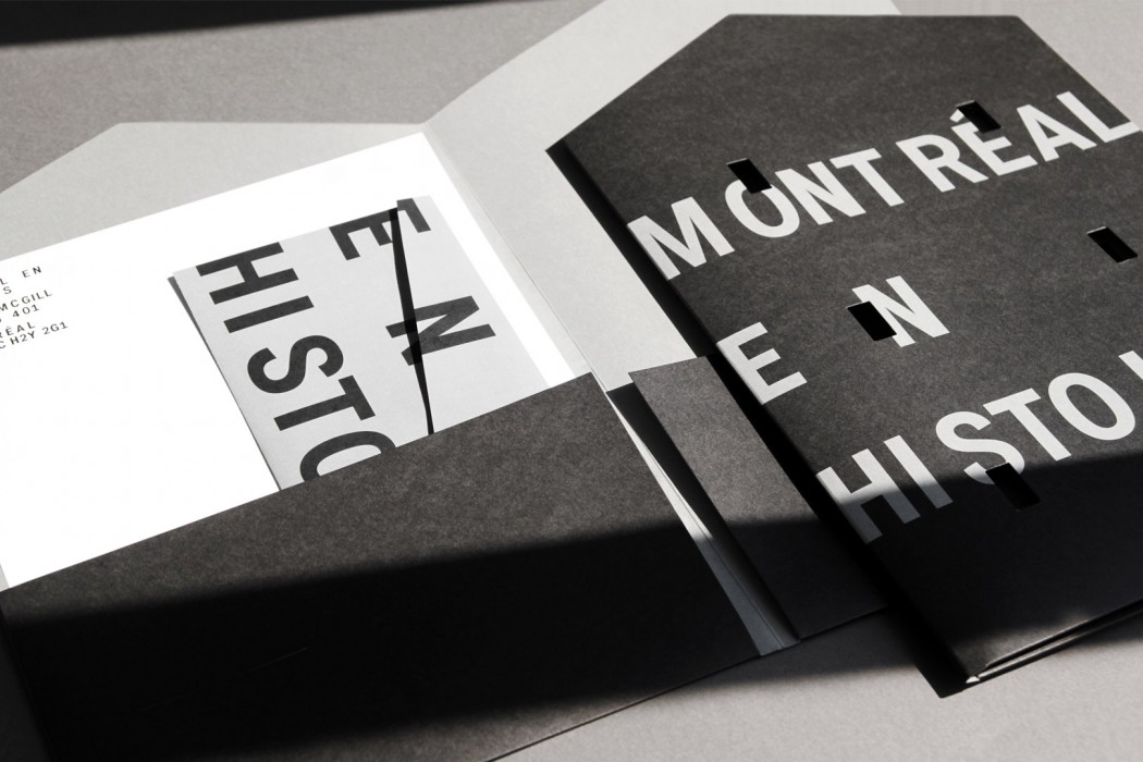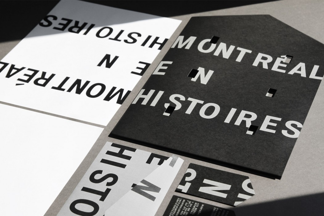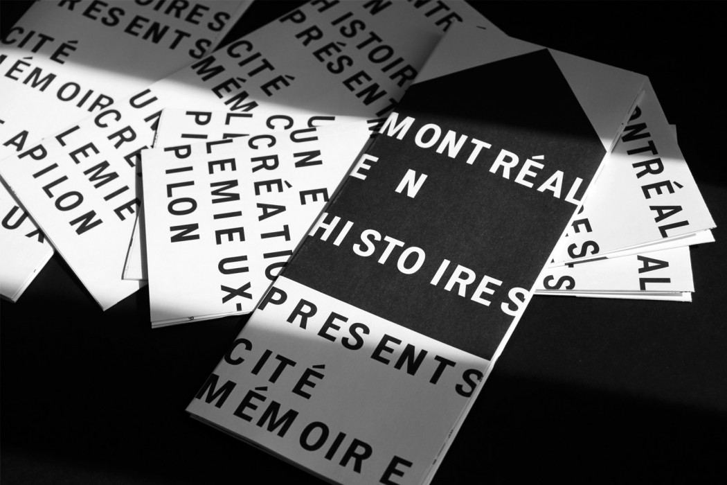 Inspirés par les images d’archives que l’organisme utilise dans ses projets, nous avons créé un programme d’identité entièrement fait en noir et blanc. De plus, comme ses membres s’efforcent de mettre en lumière les pans secrets de l’histoire de la ville, nous nous sommes amusés à espacer les lettres de la signature de façon inégale afin de faire un clin d’œil au casse-tête historique qu’ils tentent de reconstituer. La silhouette de maison, quant à elle, fait référence à la place d’honneur de l’architecture dans l’histoire de la métropole. Ces quelques astuces identitaires sont reprises au fil des publications et des divers projets de manière à conférer à Montréal en Histoires une identité qui lui est propre et qui saura perdurer dans le temps.