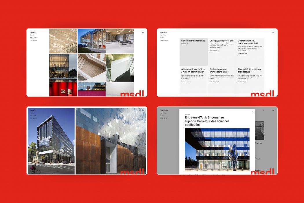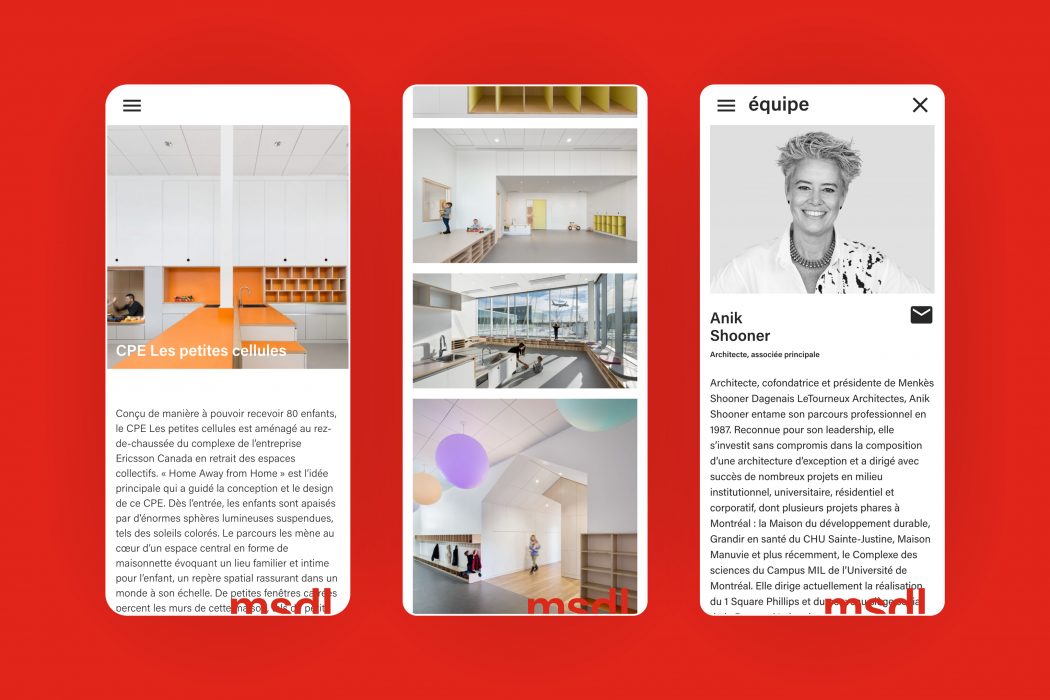 Menkès Shooner Dagenais LeTourneux Architectes conçoit des projets axés sur l’innovation, le développement durable et la pérennité des villes. Par la contraction du nom en MSDL, la marque prend de la puissance et de la symbolique. Le logo est construit de manière à évoquer l’horizon et l’émergence de structures.