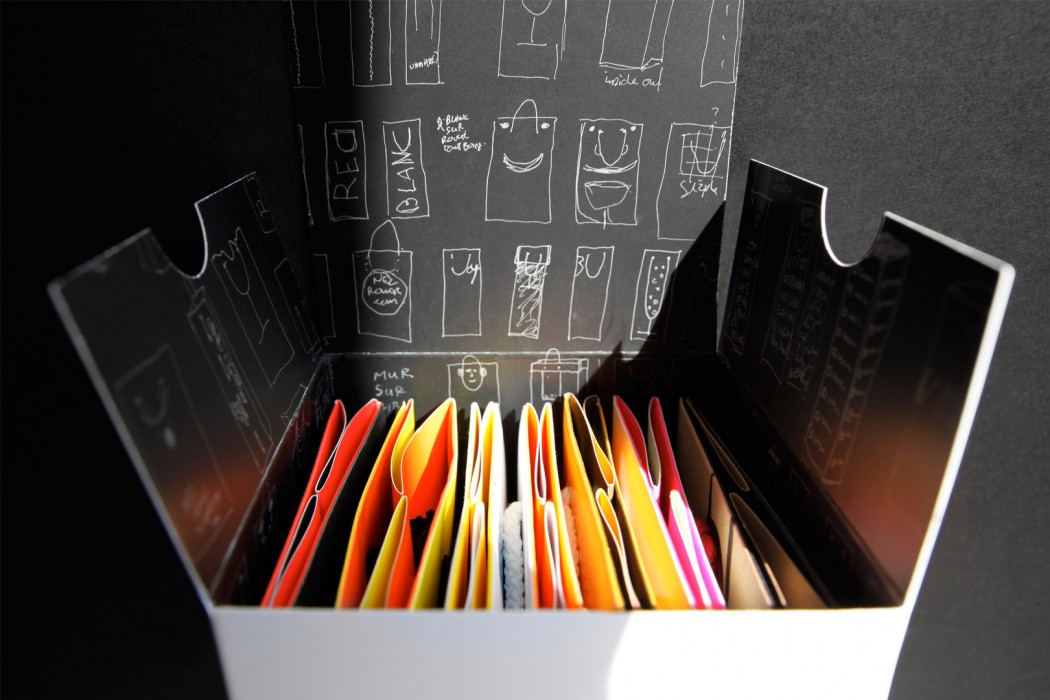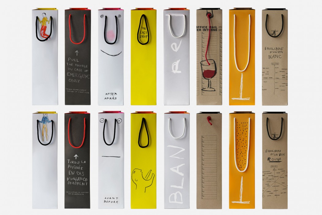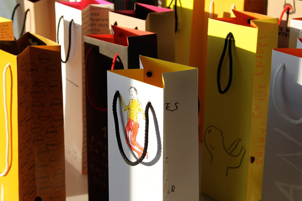 Pour souligner la nouvelle année 2010, Paprika désirait offrir un cadeau pratique à ses collaborateurs. Dans cette optique, le sac-cadeau pour bouteille de vin nous a semblé le candidat idéal. Dans une boîte de la taille d’une bouteille, nous avons offert huit sacs cadeaux différents sur lesquels figuraient de courtes phrases portant au sourire telles que «Tirez la poignée en cas d’urgence seulement — peut contenir ou contient du vin de dépanneur» ou «Dix minutes de saut à la corde pour brûler les calories d’un verre de vin». La forme des poignées, celle des sacs ou de leur contenu ont été une source inépuisable de concepts et de fous rires.