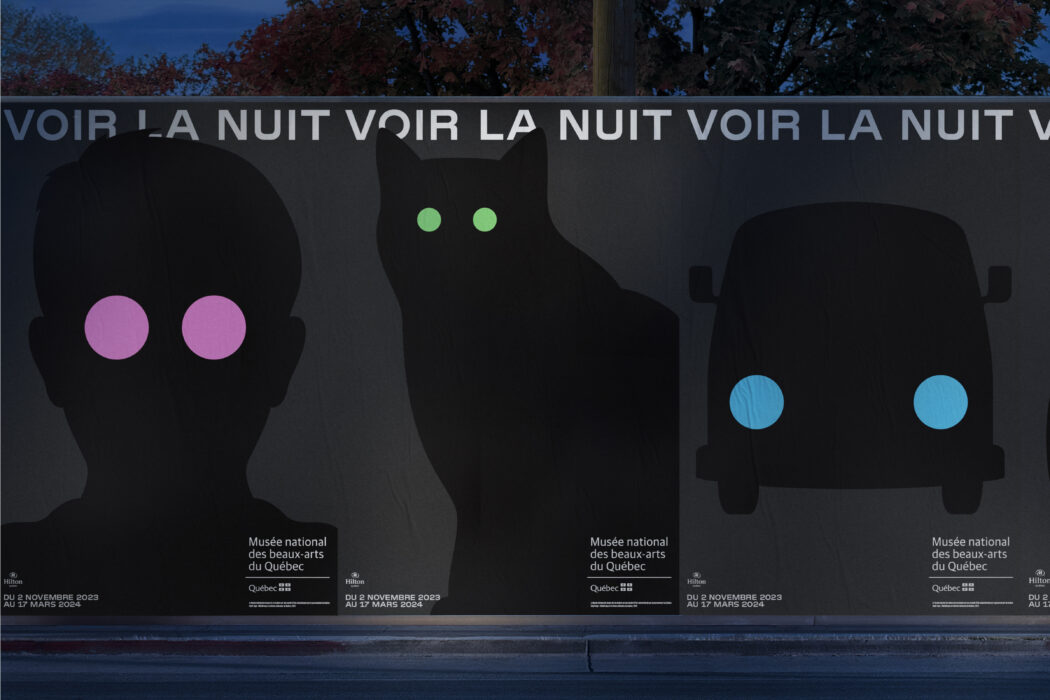 L’exposition met en lumière la virtuosité des artistes pour rendre sensible l’obscurité, en faisant émerger de l’ombre, formes, visages et paysages, ou encore, en représentant les méandres des rêves. Paprika conçoit la campagne de cette exposition par une approche qui plonge le spectateur dans l’obscurité. Sur toile de fond d’un noir quasi entier, on voit apparaitre le dessin de silhouettes de bêtes ou d’objets à peine perceptible, devenant des sources lumineuses dans la nuit noire. Cette campagne se déploie en affichage, spot tv et publicités numériques ainsi qu’en signalétique extérieure.