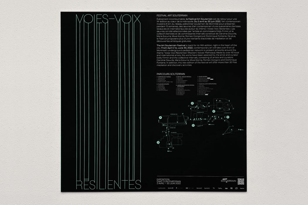 Qui sont ces voix minoritaires ? Comment font-elles résilience ? Comment trouvent-elles des solutions aux violences systémiques ? C’est par une volonté d’établir un dialogue équitable par une utopie sociale plus égalitaire que se pose l’édition 2022 du festival Art Souterrain Voies-Voix résilientes. Une identité créée par tissage, représentation de ce tissu social comme résultante d’un enchevêtrement de ces voix singulières; celles des artistes du festival. Une série de cumul, d’ajouts créant la rythmique de ces voix croisées; ultime résistance à la normalisation.